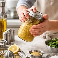 Mocno zakręć słoik i energicznie potrząsaj nim przez około 30 sekund. Zobaczysz, jak składniki zaczną się łączyć, tworząc gładką, jednolitą i lekko kremową emulsję. To znak, że dressing jest gotowy. Spróbuj sosu i w razie potrzeby dopraw go dodatkową szczyptą soli lub pieprzu.