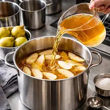 Zmniejsz ogień do małego, tak aby mikstura tylko delikatnie pyrkała. Dodaj miód (60 g) oraz sok z cytryny (50 ml). Gotuj delikatnie przez 12–15 minut, mieszając co 3–4 minuty drewnianą łyżką, aż gruszki będą miękkie (przebij widelec — powinien gładko wchodzić) a aromaty się połączą. Jeśli chcesz bardziej klarowny napój, gotuj krócej; na bardziej esencjonalny smak możesz wydłużyć do 20 minut.