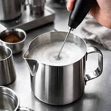 Spień mleko: jeśli masz spieniacz ręczny lub elektryczny, zanurz końcówkę i spień mleko przez 20–30 sekund aż powstanie gęsta, kremowa pianka. Jeśli nie masz spieniacza, przelej gorące mleko do wysokiego kubka i energicznie ubij trzepaczką ręczną przez 30–40 sekund lub włóż szczelnie zamknięty słoik, mocno nim potrząsaj przez 30 sekund (uważaj — słoik będzie gorący). Pianka powinna być gęsta i mieć drobne, jednolite pęcherzyki; jeśli jest zbyt rzadka, spień dłużej.
