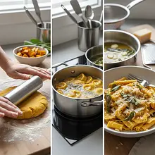 Inspiracją dla tego dania są 'tortelli di zucca' z Lombardii, czyli pierożki nadziewane dynią. Nasz przepis to uproszczona, 'zdekonstruowana' wersja, w której smak dyni przeniesiony jest bezpośrednio do ciasta, co pozwala cieszyć się nim w prostszej i szybszej formie.