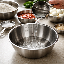 Rozgrzej piekarnik maksymalnie (250–280°C); jeśli masz kamień do pizzy lub stal, włóż go do piekarnika na najniższą półkę i nagrzej przez co najmniej 45 minut. Jeśli używasz blachy, nagrzej ją razem z piekarnikiem.