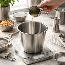 - Aquafaba (woda z ciecierzycy z puszki) 120 ml