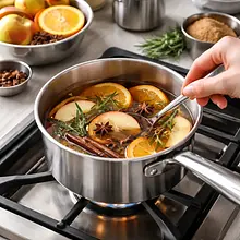 Postaw garnek na kuchence na średniej mocy palnika. Powoli podgrzewaj mieszankę, od czasu do czasu delikatnie mieszając drewnianą łyżką. Obserwuj napój – Twoim celem jest doprowadzenie go do momentu, w którym jest bardzo gorący i zaczynają pojawiać się pierwsze, małe bąbelki przy brzegach garnka. To jest tzw. punkt wrzenia pęcherzykowego (simmering). Absolutnie nie doprowadzaj grzańca do gwałtownego wrzenia.