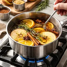 Postaw garnek na kuchence na średniej mocy palnika. Powoli podgrzewaj mieszaninę, aż stanie się bardzo gorąca, ale nie doprowadzaj jej do wrzenia. Proces ten nazywa się maceracją na gorąco i pozwala na wydobycie pełni aromatów z przypraw. Od momentu, gdy napój będzie gorący (zobaczysz unoszącą się parę i delikatne drżenie powierzchni), zmniejsz moc palnika do minimum i podgrzewaj całość przez około 15-20 minut. Mieszaj od czasu do czasu.
