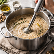 Zdejmij garnek z ognia. Za pomocą blendera ręcznego (żyrafy) zmiksuj zupę bezpośrednio w garnku na idealnie gładki, aksamitny krem. Miksuj cierpliwie przez 2-3 minuty, poruszając blenderem w górę i w dół, aby upewnić się, że nie ma żadnych grudek. Jeśli nie masz blendera ręcznego, przelej zupę partiami do blendera kielichowego i zmiksuj.