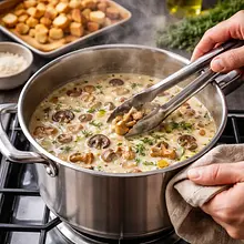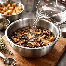 Zacznij od przygotowania grzybów. Umieść suszone grzyby w średniej misce i zalej je około 500 ml gorącej, ale nie wrzącej wody. Upewnij się, że wszystkie grzyby są zanurzone. Odstaw na minimum 30 minut, aby zmiękły i uwolniły swój aromat. Po tym czasie wyjmij grzyby łyżką cedzakową na deskę do krojenia, ale ABSOLUTNIE NIE WYLEWAJ wody, w której się moczyły - to esencja smaku! Odcedź tę wodę przez bardzo drobne sitko lub gazę, aby pozbyć się ewentualnego piasku i odstaw na bok.