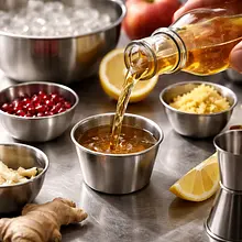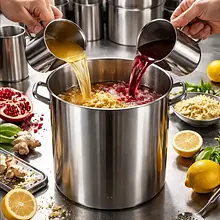Spróbuj napoju i oceń balans słodyczy i kwasowości. Jeśli chcesz słodszy smak, dodaj po 5–10 g miodu i mieszaj aż się rozpuści. Jeśli potrzebujesz wyraźniejszej kwasowości, dodaj po 5–10 ml soku z cytryny.