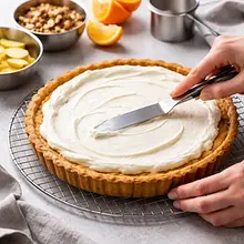 Przed podaniem odczekaj 10–15 minut po wyjęciu z lodówki (jeśli przechowywana chłodzona), aby aromaty się otworzyły. Krojąc tartę, użyj ostrego, zwilżonego noża (przetrzyj go ciepłą wodą i osusz między cięciami), by uzyskać czyste plastry.