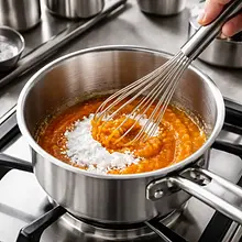 Nagrzej piekarnik do 200°C (góra-dół). Przekrój dynię na pół (jeśli używasz hokkaido, możesz piec ze skórą), usuń nasiona łyżką i rozłóż połówki skórą do dołu na blasze wyłożonej papierem do pieczenia. Piecz przez 35-45 minut aż miąższ będzie miękki i łatwo wchodzi w niego widelec. Po upieczeniu odstaw do lekkiego przestudzenia, a następnie za pomocą łyżki wydrąż 500 g miękkiego miąższu do miski.