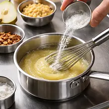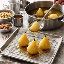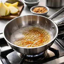 Przygotuj gruszki: obierz je cienko nożem obieraczką, przekrój na pół wzdłuż i wyjmij gniazda nasienne łyżeczką. Jeśli używasz małych gruszek, możesz zostawić w całości i naciąć od góry. W średnim garnku połącz 250 ml wody, 40 g cukru, zeskrobaną wnętrzność laski wanilii wraz z pustym strąkiem (dodaj strąk dla aromatu) i 1 łyżeczkę cynamonu (ok. 2 g). Doprowadź do wrzenia na średnim ogniu.