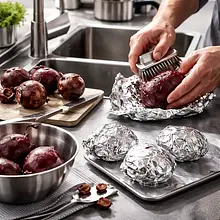 Użyj blachy do pieczenia i folii aluminiowej. Sprawdź miękkość widelcem: miękki burak jest łatwy do nakłucia. Nie piecz w zbyt niskiej temperaturze — stracisz intensywność smaku.