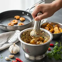 Podziel masę na dwie równe części. Weź małą miseczkę (o pojemności około 250-300 ml) i wysmaruj ją w środku odrobiną oliwy. Przełóż do niej jedną porcję masy Mofongo i mocno dociśnij łyżką, aby nadać jej kształt kopuły. Odstaw na bok i powtórz z drugą porcją. Utrzymywanie Mofongo w cieple jest ważne, więc możesz przykryć miseczki talerzem.