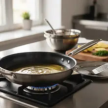 Teraz najtrudniejsza część: przewracanie. Przykryj patelnię dużym, płaskim talerzem lub deską do krojenia. Zdecydowanym ruchem odwróć patelnię do góry nogami, tak aby placek znalazł się na talerzu. Następnie ostrożnie zsuń placek z powrotem na patelnię, surową stroną do dołu. Smaż kolejne 8-10 minut na drugiej stronie, aż również będzie złocista i chrupiąca. W międzyczasie nagrzej piekarnik do 200°C (termoobieg).