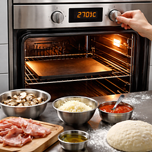 Najlepiej spożyć pizzę tego samego dnia. Resztki przechowuj w lodówce do 48 godzin w szczelnym pojemniku. Aby podgrzać — rozgrzej piekarnik do 200°C i podgrzewaj 6–8 minut na blasze lub kamieniu (dzięki temu odzyska chrupkość). Unikaj podgrzewania w mikrofali, bo ciasto stanie się gumowate.