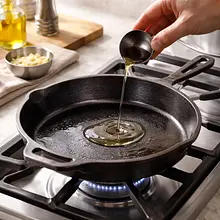 Rozgrzej patelnię (najlepiej żeliwną lub z grubym dnem) na średnio-wysokim ogniu. Dodaj 10 g oliwy. Gdy oliwa jest gorąca (powinna lekko migotać), włóż polędwiczki i smaż 3-4 minuty z każdej strony, aż pojawi się złocista skórka. Jeśli kawałki są grubsze, skróć ogień po pierwszych 3 minutach i smaż kolejne 2-3 minuty. Po usmażeniu przenieś mięso na deskę i odstaw na 6-8 minut — odpoczynek pozwoli sokom równomiernie się rozprowadzić.