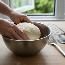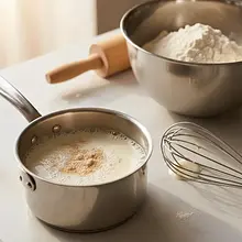 Zacznij od przygotowania zaczynu, czyli 'pobudzenia' drożdży. W małym garnuszku podgrzej 250 ml mleka. Musi być ono lekko ciepłe, o temperaturze około 37°C – jak temperatura ciała. Sprawdź, kapiąc kroplę na wewnętrzną stronę nadgarstka; powinno być przyjemnie ciepłe, ale nie gorące. Do miseczki wkrusz 25 g świeżych drożdży, dodaj 1 łyżkę cukru (z odmierzonej porcji 80g), 1 łyżkę mąki (z odmierzonej porcji 500g) i zalej połową ciepłego mleka. Delikatnie wymieszaj widelcem, tylko do połączenia składników. Przykryj ściereczką i odstaw w ciepłe, nieprzewiewne miejsce na 10-15 minut. Zaczyn jest gotowy, gdy znacznie zwiększy objętość i pokryje się gęstą pianą.