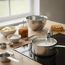 W małym garnuszku podgrzej 250 ml mleka. Musi być lekko ciepłe, o temperaturze około 37°C – gdy włożysz do niego palec, powinno być przyjemnie ciepłe, ale nie gorące. Do dużej miski pokrusz 25 g świeżych drożdży. Dodaj 1 łyżkę cukru (15 g z całości) i zalej ciepłym mlekiem. Delikatnie wymieszaj widelcem, tylko do rozpuszczenia drożdży. Przykryj miskę czystą ściereczką i odstaw w ciepłe, wolne od przeciągów miejsce na około 10-15 minut. Po tym czasie na powierzchni powinna pojawić się gęsta, beżowa piana. To znak, że drożdże są aktywne i gotowe do pracy.