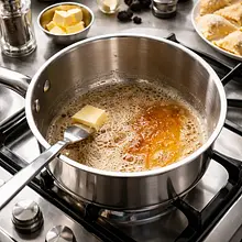 W średniej wielkości rondlu rozgrzej 50 g masła na średnim ogniu aż zacznie się topić i lekko pienić — nie pozwól mu się zbrązowić. Zmniejsz ogień na niski i wlej 200 ml śmietany kremówki, mieszając łyżką drewnianą. Podgrzewaj delikatnie przez 4-5 minut, aż sos zacznie lekko gęstnieć (powinien pokrywać tył łyżki).
