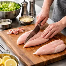 Użyj ostrego noża i deski do krojenia. Miska powinna być metalowa lub szklana. Nie zostawiaj surowego mięsa zbyt długo w temperaturze pokojowej — 20 minut to maksimum przy krótkiej marynacie.