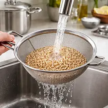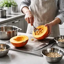 Przygotuj komosę. Odważ 160 g suchej komosy, przesyp do sitka o drobnych oczkach i płucz pod bieżącą zimną wodą przez około 1-2 minuty, energicznie potrząsając sitkiem, aż woda będzie klarowna. Przenieś do średniego garnka, zalej 320 ml zimnej wody (stosunek 1:2), przykryj pokrywką i doprowadź do wrzenia na dużym ogniu. Po osiągnięciu wrzenia zmniejsz ogień do małego, gotuj pod przykryciem 12-15 minut, aż ziarna staną się przezroczyste i pojawi się mały biały 'ogon' (zdjęty ze zboża). Wyłącz ogień i odstaw pod przykryciem na 5 minut, następnie spulchnij widelcem i odstaw do lekkiego przestudzenia.