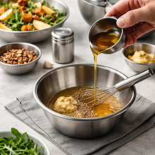Rozgrzej piekarnik do 200°C (góra-dół) z funkcją termoobiegu jeśli jest dostępna. Przygotuj blachę wyłożoną papierem do pieczenia. Dynię obierz obieraczem do warzyw (jeśli używasz hokkaido możesz zostawić skórę) i przekrój na pół. Usuń nasiona łyżką, a następnie pokrój miąższ na kostkę o boku około 2 cm — równe kawałki upieką się równomiernie. Ułóż kawałki dyni na blasze, skrop 25 g oliwy z oliwek, lekko posól (ok. 2 g) i delikatnie wymieszaj ręką lub silikonową szpatułką tak, aby każdy kawałek był pokryty tłuszczem.