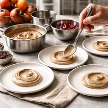 Podczas serwowania informuj gości o obecności płatków soli i chrupiących elementów pistacji. Resztki kremu i soil przechowuj oddzielnie w lodówce do 3 dni (krem w szczelnej misce, soil w suchym pojemniku).