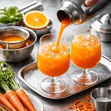 Rozgrzej piekarnik do 200°C (góra-dół). Umyj marchew, obetnij końce, większe sztuki przekrój wzdłuż na połówki lub ćwiartki, aby kawałki były podobnej wielkości (ok. 2-3 cm grubości). Ułóż marchew na blaszce wyłożonej papierem do pieczenia, skrop 10 g syropu z kroku 3 (lub 10 g oleju, jeśli wolisz), lekko posól (szczypta soli równomiernie rozłożona). Piecz 25-30 minut aż marchewki będą miękkie w dotyku i lekko skarmelizowane na brzegach; sprawdzisz to wbijając nóż — powinien wchodzić gładko bez oporu. Po upieczeniu odstaw do ostygnięcia.