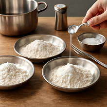 Wyjmij schab, opłucz szybko pod zimną wodą i osusz papierowym ręcznikiem. Ułóż schab na desce i podziel na 4 równe części (po około 200 g każda). Jeśli masz grube plastry, rozbij lekko każdy kawałek dłonią, aby uzyskać równą grubość. Następnie natrzyj każdy kotlet równomiernie 1,5 g soli (łącznie użyj około 6 g soli na całe mięso) i świeżo mielonym pieprzem z obu stron. Posmaruj każdą stronę po 7-8 g musztardy (razem 30 g na całość) i rozprowadź cienko drobno posiekanym czosnkiem (2 ząbki = 10 g). Odstaw na 10-15 minut w temperaturze pokojowej, aby musztarda delikatnie wniknęła w mięso (sucha marynata).
