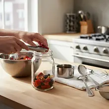 To najważniejszy etap, który gwarantuje świeżość sałatki. Weź czysty, suchy słoik (o pojemności ok. 750 ml - 1 litr) i zacznij układać składniki w następującej kolejności, tworząc wyraźne warstwy: 1. Na samo dno wlej przygotowany wcześniej dressing cytrynowo-ziołowy. 2. Na dressing wsyp 'twarde' warzywa: pokrojoną czerwoną cebulę, paprykę i ogórka. Będą one stanowiły barierę chroniącą resztę składników przed wilgocią. 3. Następnie dodaj warstwę opłukanej ciecierzycy. 4. Kolejna warstwa to całkowicie wystudzona komosa ryżowa. Delikatnie ją rozprowadź, nie dociskając zbyt mocno. 5. Na komosie ułóż przekrojone pomidorki koktajlowe oraz pokruszony w palcach ser feta. Jeśli używasz oliwek, dodaj je teraz. 6. Na samą górę, po brzegi słoika, włóż liście świeżego szpinaku. Delikatnie je dociśnij, aby wypełniły całą wolną przestrzeń. Jeśli używasz nasion słonecznika, posyp nimi szpinak. Na koniec mocno zakręć słoik.