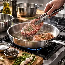 Po usmażeniu zdejmij steki z patelni na deskę do krojenia lub talerz. Przykryj luźno folią aluminiową i odstaw do odpoczynku na 6–8 minut. W tym czasie soki równomiernie rozłożą się w mięsie, co zapewni większą soczystość po krojeniu.