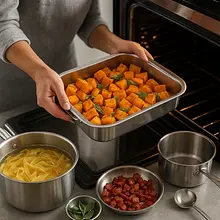 Wstaw blachę z dynią do nagrzanego piekarnika. Piecz przez około 25-30 minut. Dynia jest gotowa, gdy stanie się bardzo miękka (widelec powinien wchodzić w nią bez żadnego oporu) i zacznie się delikatnie karmelizować na brzegach. Po upieczeniu wyjmij blachę z piekarnika i odstaw na bok.