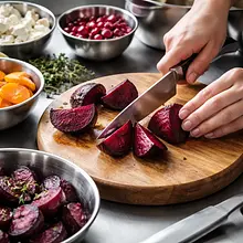 W starożytności granat był symbolem płodności i życia — jego rubinowe pestki od wieków wykorzystywano nie tylko w kuchni, ale i jako dekorację ceremonialną. Kombinacja buraka i granatu to także klasyczne zestawienie smaków w kuchniach Środkowego Wschodu.