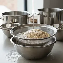 Wsyp komosę ryżową na drobne sitko i bardzo dokładnie przepłucz ją pod zimną, bieżącą wodą. Pocieraj ziarna dłońmi przez około 30 sekund. Ten krok jest kluczowy, aby pozbyć się saponin - naturalnej, gorzkiej powłoki ziaren. Następnie przełóż opłukaną komosę do małego garnka, zalej 200 ml zimnej wody (proporcja 1:2, czyli dwie części wody na jedną część komosy) i dodaj szczyptę soli. Zagotuj.
