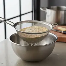 Użyj sitka o bardzo małych oczkach, aby drobne ziarenka komosy nie uciekły. Jeśli nie wypłuczesz komosy, może mieć gorzki, mydlany posmak. Płucz aż woda przestanie się pienić.