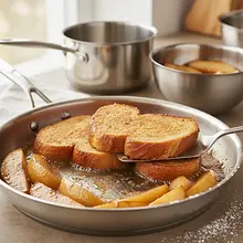 Oto przepis, który odmieni Twoje postrzeganie klasycznych tostów francuskich. Zamiast zwykłego chleba, używamy puszystej, maślanej chałki, która po namoczeniu w aromatycznej masie jajecznej z nutą cynamonu i wanilii, staje się niezwykle delikatna w środku, a chrupiąca na zewnątrz. To jednak dopiero początek kulinarnej podróży. Danie wieńczy aksamitny serek mascarpone, przełamany słodyczą i głębią prawdziwej wanilii, oraz klejnot w koronie – kawałki gruszek skarmelizowane w maśle z brązowym cukrem, które dodają owocowej słodyczy i lekko korzennego posmaku. Całość tworzy kompozycję idealną na leniwe, weekendowe śniadanie, elegancki brunch czy wyjątkowy deser. To danie, które rozpieszcza zmysły, łącząc w sobie prostotę domowej kuchni z wyrafinowaniem godnym najlepszych kawiarni. Jest to hołd dla tradycji w nowoczesnym, bogatym wydaniu.