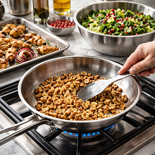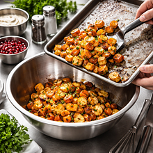 W czasie, gdy warzywa się pieką, podpraż orzechy włoskie. Rozgrzej suchą patelnię na średnim ogniu. Wrzuć orzechy (80 g) i praż 6-8 minut, potrząsając patelnią co 30-40 sekund, aż poczujesz intensywny orzechowy zapach i zobaczysz lekko przyrumienione krawędzie. Odstaw na bok do wystudzenia. Po ostudzeniu groźnie rozdrobnij orzechy ręcznie lub grubo posiekaj nożem.