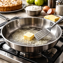 Na średniej patelni rozgrzej 20 g masła (wyjęte z 220 g; użyj części ogólnej masła) na średnim ogniu. Wrzuć przyrumienione plasterki jabłek i smaż 5-7 minut, mieszając delikatnie — jabłka powinny zmięknąć i puścić część soku, ale zachować kształt (mają nie rozpadać się całkowicie). Po zdjęciu z ognia wsyp 40 g bułki tartej i wymieszaj — bułka wchłonie nadmiar soku. Odstaw do przestudzenia.