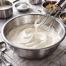Użyj mieszadła ręcznego lub miksera z trzepaczką. Jeśli mus wydaje się zbyt rzadki po 60 minutach, schładzaj dalej; tekstura powinna być kremowa, ale trzymać kształt.