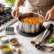Zdejmij garnek z ognia i odczekaj 5 minut. Zblenduj zawartość garnka blenderem ręcznym lub w kielichu blendera na gładkie puree (czas blendowania ~1–2 minuty). Przetrzyj puree przez drobne sito do miski, dociskając łyżką, aby uzyskać klarowny syrop bez włókien. Odstaw do ostygnięcia.