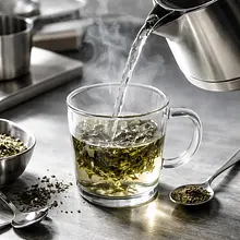 Umyj gruszki, obierz je i usuń gniazda nasienne. Pokrój miąższ w kostkę o boku około 1,5 cm. Obierz imbir i zetrzyj na drobnej tarce (powinno powstać około 30 g startego imbiru). W średnim garnku (średnica dna ~18–20 cm) umieść pokrojone gruszki, starty imbir, 150 g cukru trzcinowego, 200 ml wody oraz połówkę laski cynamonu (ok. 5 g). Doprowadź do wrzenia na średnim ogniu, następnie zmniejsz ogień i gotuj na wolnym ogniu przez 12–15 minut, mieszając co 3–4 minuty, aż gruszki staną się bardzo miękkie i część płynu zredukuje się do gęstego syropu.